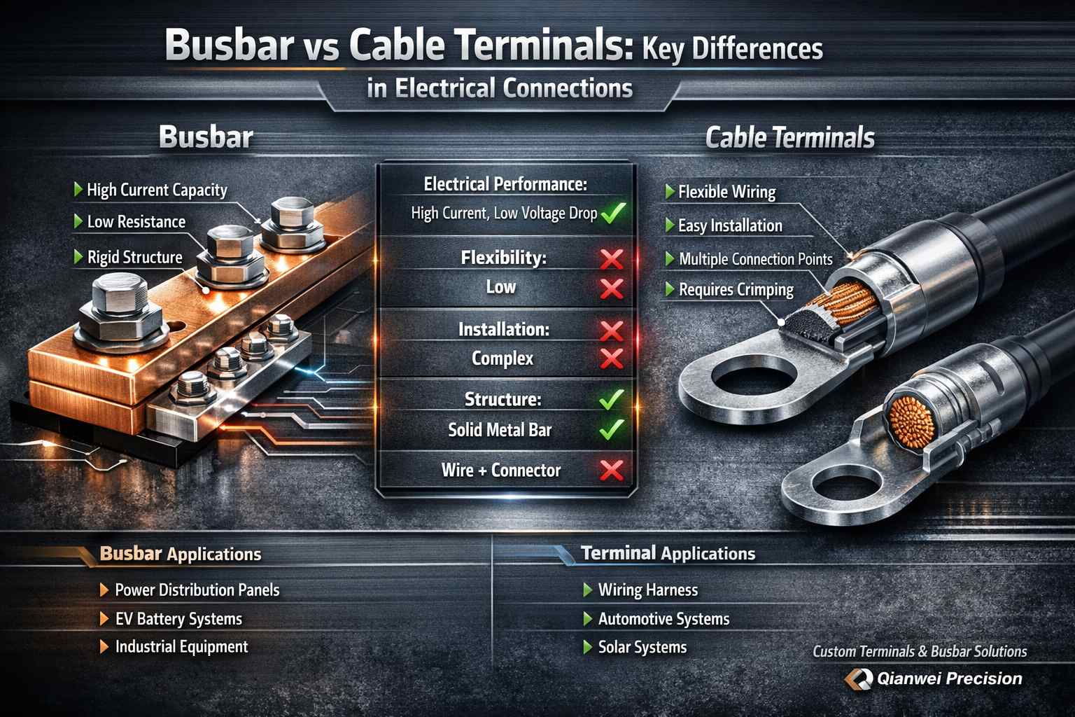 귀하의 전기 연결 요구 사항에 맞는 신뢰할 수 있는 공급업체를 찾고 계시다면, 지금 Qianwei Precision에 문의하세요. 전문가 지원 및 맞춤형 솔루션 제공.